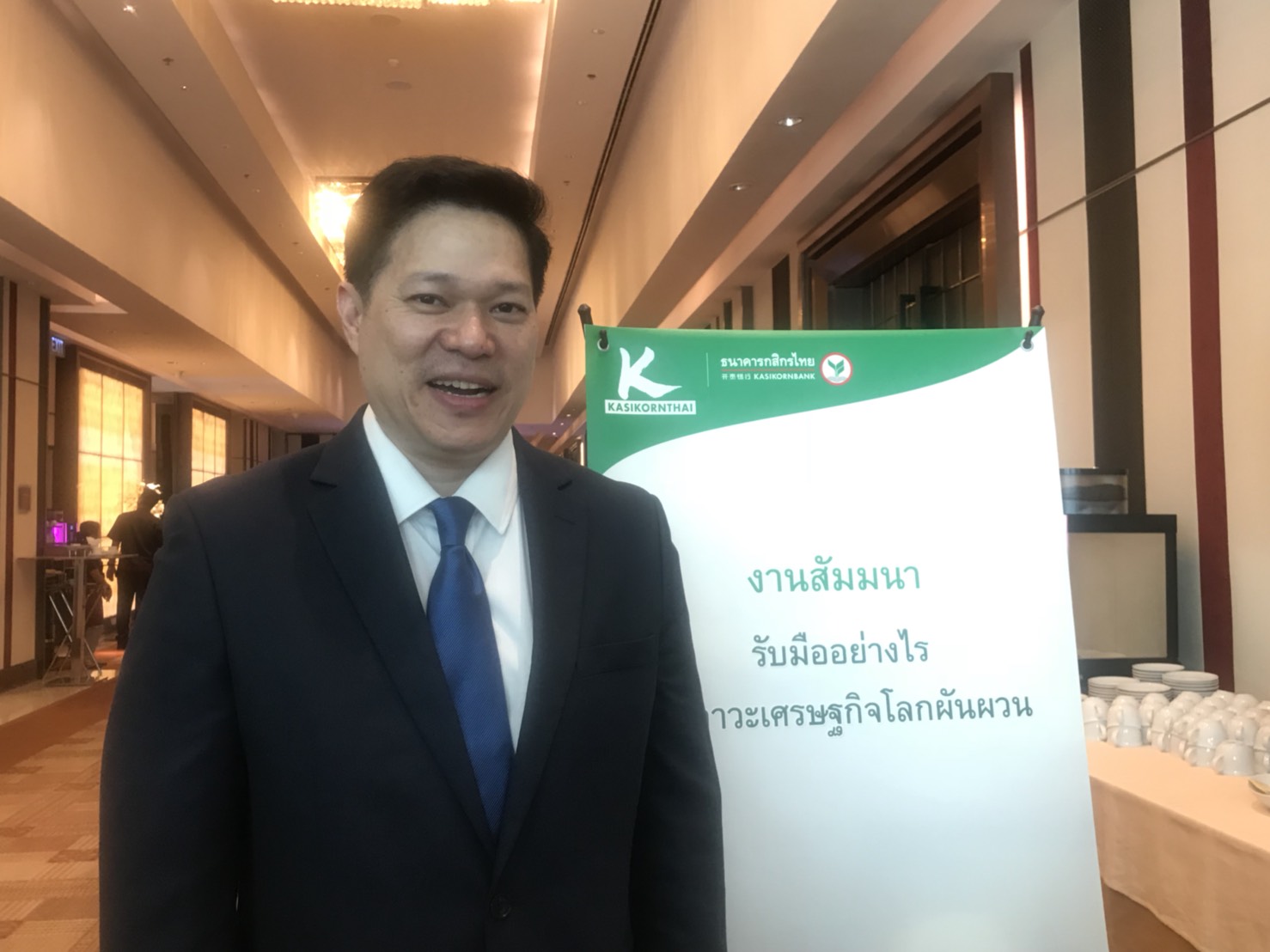 นายกอบสิทธิ์ ศิลปชัย ผู้บริหารงานวิจัยเศรษฐกิจและตลาดทุน ธนาคารกสิกรไทย กล่าวว่า สงครามการค้าระหว่างสหรัฐอเมริกา กับประเทศต่างๆ รวมทั้งจีน ยังคงกดดันเศรษฐกิจโลกจนกว่าจะทราบผลการเลือกตั้งสหรัฐในเดือนพฤศจิกายนนี้ โดยยอมรับว่ามีความเสี่ยงเพิ่มขึ้นที่จะปรับลดการขยายตัวของการส่งออกและการเติบโตของเศรษฐกิจไทย เพราะสงครามการค้าเริ่มมีผลกระทบต่อการส่งออกของโลก โดยประเทศสิงคโปร์เริ่มได้รับผลกระทบแล้ว ดังนั้นในเดือนกันยายน นี้ ธนาคารกสิกรไทยจะมีการทบทวนประมาณการใหม่อีกครั้ง จากปัจจุบันที่คาดว่าการส่งออกจะโตร้อยละ 8.8 ส่วนจีดีพีปีนี้เติบโตร้อยละ 4.5 แต่ขณะนี้ยังเร็วเกินไปที่จะปรับประมาณการใหม่