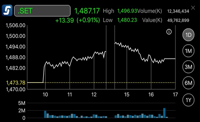 ตลท. 21 ก.ย. – ผู้สื่อข่าวรายงานว่าดัชนีตลาดหุ้นไทยปิดที่ 1,487.17 จุด เพิ่มขึ้น 13.39 จุด หรือ ร้อยละ 0.91 มูลค่าการซื้อขาย 49,762.90 ล้านบาท ดัชนีเปิดบวกหลังต่างชาติกลับมาซื้อสุทธิ นอกจากนี้ ตลาดคาดการณ์ว่าธนาคารกลางสหรัฐ (เฟด) จะคงดอกเบี้ยในการประชุมวันที่ 20-21 กันยายนนี้ ขณะที่ธนาคารกลางญี่ปุ่น (บีโอเจ) มีมติคงอัตราดอกเบี้ยที่ระดับติดลบร้อยละ 0.1 ในการประชุมวันนี้ ทำให้มีแรงซื้อเข้ามาต่อเนื่องในหุ้นเกือบทุกกลุ่ม ส่งผลให้ดัชนีปรับขึ้นต่อเนื่องตลอดวัน ดัชนีสูงสุดที่ระดับ 1,496.93 จุด