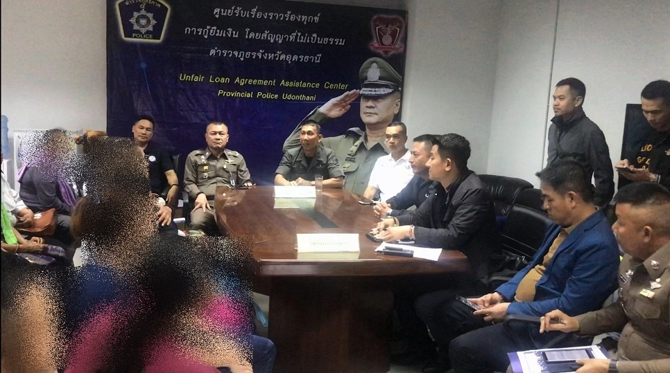 วันนี้ (21 ก.ค.) ที่กองกำกับการสืบสวนภูธรจังหวัดอุดรธานี พล.ต.ต.บุญลือ กอบางยาง รองผู้บัญชาการตำรวจภูธรภาค 4 พล.ต.ต.ยรรยง เวชโอสถ ผบก.สส.ภ.4 และ พล.ต.ต.พีระพงศ์ วงษ์สมาน ผบก.ภ.จว.อุดรธานี ร่วมสอบปากคำเพิ่มกับลูกหนี้เงินกู้นอกระบบที่ได้ร้องทุกข์ในฐานะผู้เสียหายจำนวน 30 ราย หลังจากเจ้าหน้าที่ตำรวจสนธิกำลังหลายหน่วยงานตรวจค้นแหล่งเงินกู้รวม 14 จุด ในจังหวัดอุดรธานีเมื่อวันที่ 19 ก.ค.ที่ผ่านมา และยึดเอกสารได้จำนวนมาก