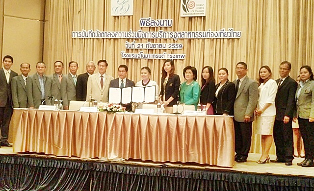 ภายในงานยังมีการลงนามบันทึกข้อตกลงความร่วมมือการบริการอุตสาหกรรมท่องเที่ยวไทย ระหว่างสภาอุตสาหกรรมท่องเที่ยวแห่งประเทศไทยและมหาวิทยาลัยสวนดุสิต โดยภาคอุตสาหกรรมท่องเที่ยวที่ผ่านมาสะท้อนความสำเร็จการเติบโตเชิงปริมาณจำนวนนักท่องเที่ยวและรายได้เป็นอย่างมาก แต่ยังมีปัญหาในเชิงคุณภาพ บุคลากรทางท่องเที่ยวยังขาดปริมาณและคุณภาพ จึงดึงมหาวิทยาลัยสวนดุสิตซึ่งเป็นสถาบันที่เชื่อมโยงองค์ความรู้ด้านวิชาการ การลงนามร่วมกันเป็นมิติใหม่ของความร่วมมือระหว่างภาคอุตสาหกรรมท่องเที่ยวกับสถาบันทางการศึกษาที่จะร่วมกันพัฒนาบุคลากรที่ได้มาตรฐาน เพื่อบริการด้านท่องเที่ยวไทยอย่างยั่งยืนและเป็นระบบมากขึ้น . –สำนักข่าวไทย