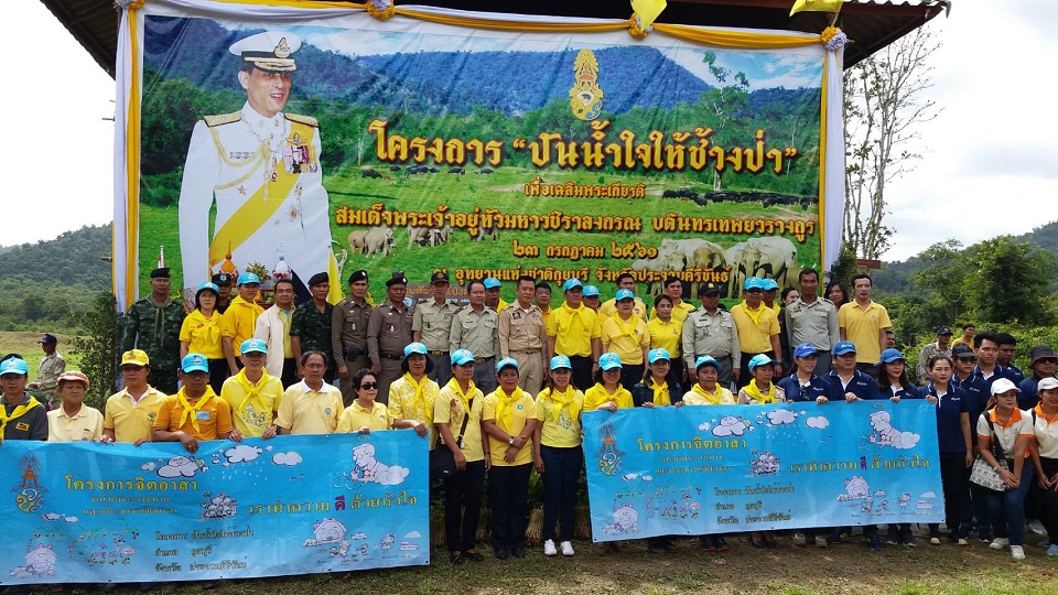 นายพงษ์พันธ์ วิเชียรสมุทร รองผู้ว่าราชการจังหวัดประจวบคีรีขันธ์ เป็นประธานเปิดโครงการปันน้ำใจให้ช้างป่า เฉลิมพระเกียรติสมเด็จพระเจ้าอยู่หัว เนื่องในโอกาสวันเฉลิมพระชนมพรรษา 28 กรกฎาคม 2561 ที่จุดชมสัตว์ป่าโป่งสลัดได อุทยานแห่งชาติกุยบุรี โดยมีนายชาตรี จันทร์วีระชัย นายอำเภอกุยบุรี ผู้แทนหน่วยงานภาครัฐและเอกชน 92 หน่วยงาน ประชาชนจิตอาสา เข้าร่วมกิจกรรมกว่า 600 คน เพื่อพัฒนาแหล่งน้ำแหล่งอาหารในผืนป่ากุยบุรี รวมทั้งหว่านเมล็ดพันธุ์หญ้าลูซี่ในพื้นที่ 100 ไร่ ทำความสะอาดกระทะน้ำที่สร้างไว้ในป่าและเติมน้ำพร้อมปรับปรุงโป่งเทียมอาหารช้าง 2 จุดด้วยการเติมเกลือและแร่ธาตุเสริมในโป่ง
