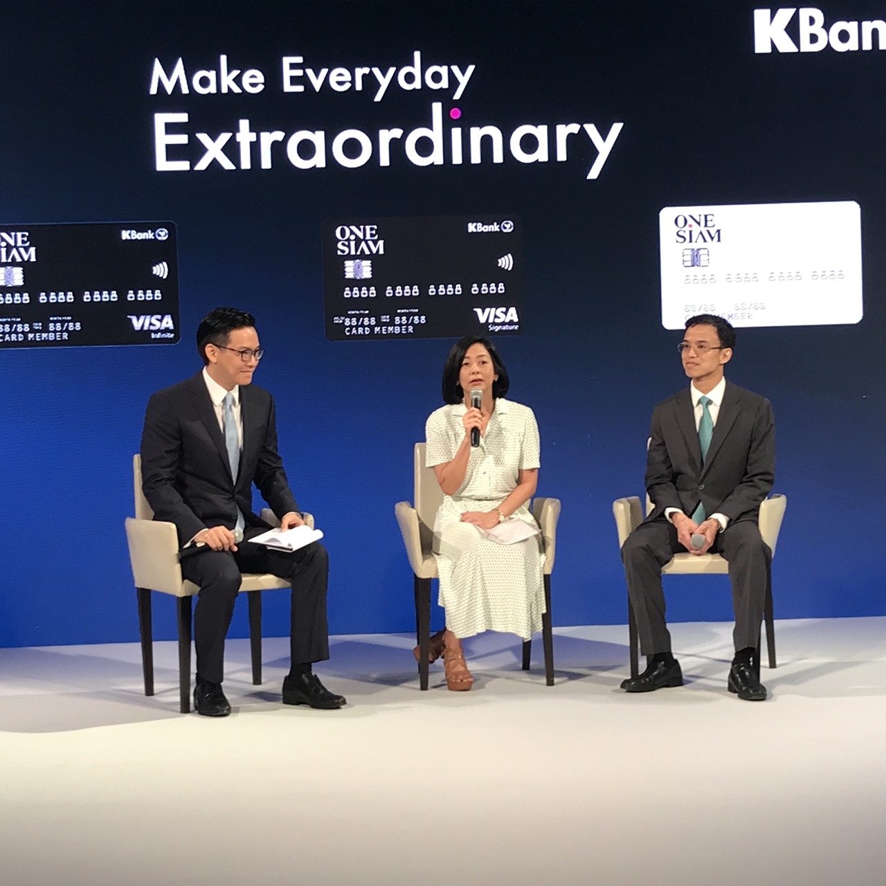 สำหรับการใช้จ่ายผ่านบัตร Wisdom เฉลี่ยใช้เงินเฉลี่ย 89,000 บาทต่อเดือนต่อราย ในกลุ่มผู้มีกำลังซื้อสูง ส่วนค่าเฉลี่ยบัตรทุกประเภทระดับกลางมียอดใช้จ่ายเฉลี่ย 21,000 บาทต่อเดือนต่อบัตร จากปัจจุบันมีฐานผู้ใช้บัตรเครดิตกสิกรไทย 2.6 ล้านคน คาดการใช้จ่ายผ่านบัตรเครดิตครึ่งปีแรก 175,000 ล้านบาท คาดการณ์ใช้จ่ายผ่านบัตรเครดิตในกลุ่มสินค้าและบริการไลฟ์สไตล์มีแนวโน้มใช้จ่ายสูงขึ้นตามเศรษฐกิจฟื้นตัวต่อเนื่อง การร่วมกับวันสยามวีซ่า และสายการบินเอมิเรสต์ เพื่อออกบัตรเครดิตวันสยามกสิกรไทย ตั้งเป้าหมายปีแรกมียอดบัตร 100,000 ใบ ใช้จ่ายรวมกว่า 5,700 ล้านบาท ยอดหนี้เอ็นพีแอลเพียงร้อยละ 1.6 นับว่าสัดส่วนน้อยมากมีการชำระเต็มวงเงินรูดซื้อสินค้าร้อยละ 55 ส่วนอีกร้อยละ 45 ผ่อนชำระรายเดือน