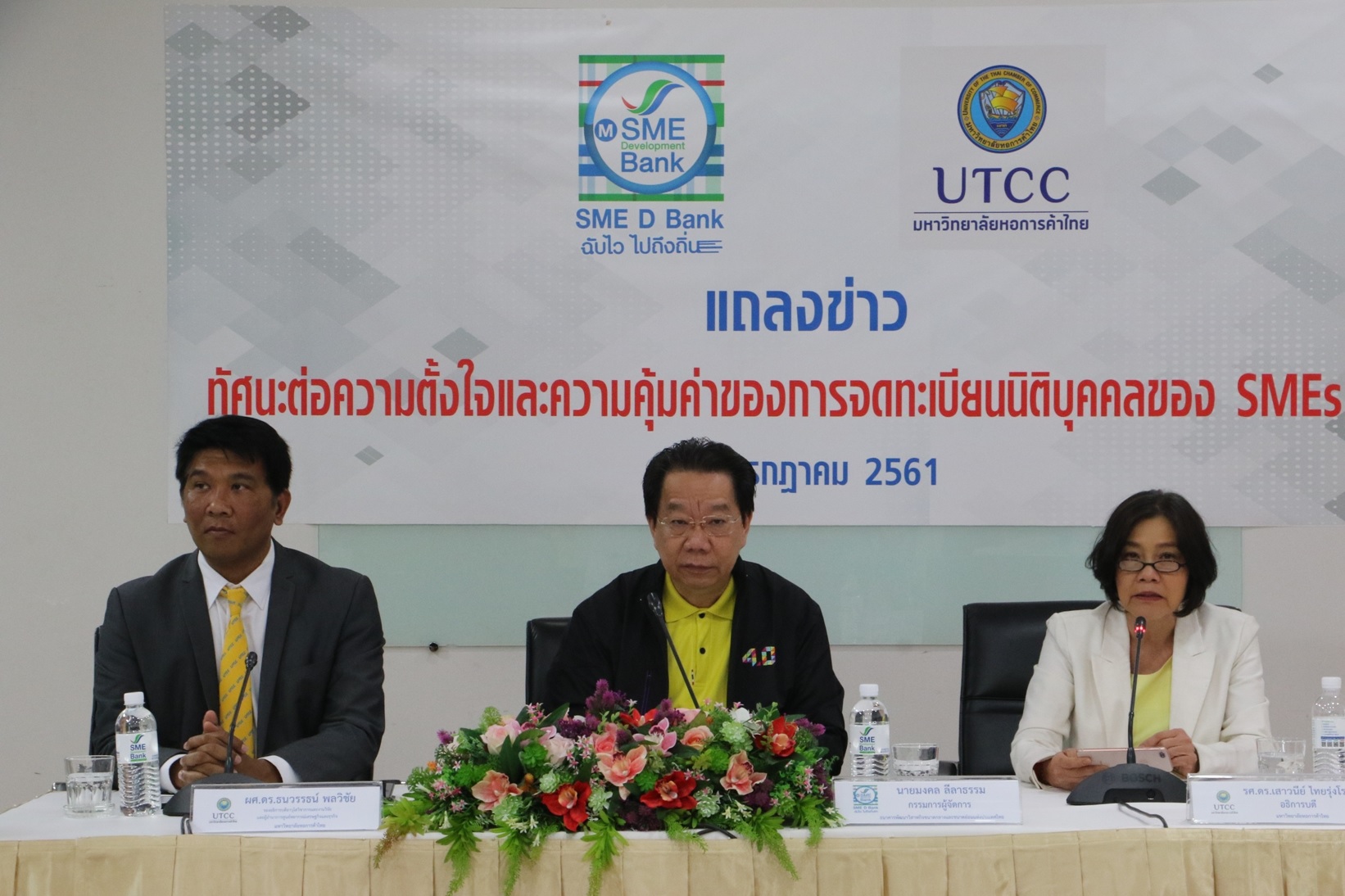 นายธนวรรธน์ พลวิชัย ผู้อำนวยการ ศูนย์พยากรณ์เศรษฐกิจและธุรกิจ มหาวิทยาลัยหอการค้าไทย เปิดเผยผลสำรวจความคุ้มค่าของการจดทะเบียนเป็นนิติบุคคลอิงข้อมูลจากกรมพัฒนาธุรกิจการค้า ว่า มีสถานประกอบการที่ยื่นจดทะเบียนนิติบุคคล 700,000-800,000 ราย ขณะที่ข้อมูลจากสำนักงานสถิติแห่งชาติ ระบุมีผู้ประกอบการเอสเอ็มอี 2.5 ล้านราย โดยผู้ประกอบการเอสเอ็มอีกว่า 1.75 ล้านราย หรือคิดเป็นร้อยละ 70 ยังไม่ยอมจดทะเบียนเป็นนิติบุคคล กลุ่มนี้จึงน่าเป็นห่วง เนื่องจากความช่วยเหลือจากภาครัฐผ่านมาตรการต่าง ๆ ไม่สามารถไปถึงผู้ประกอบการเหล่านี้ได้