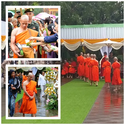 มีการถวายภัตตาหารเพลแด่พระสงฆ์และสามเณรใหม่และจัดให้จำวัดที่พระธาตุดอยตุง 1 คืน ส่วนวันที่ 26