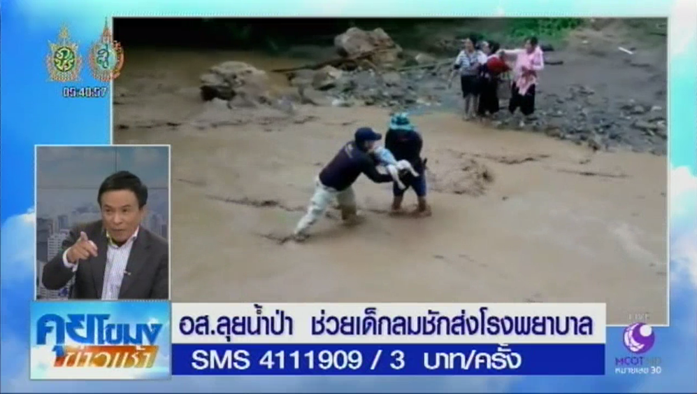 เชียงใหม่ 21 ก.ย.-เจ้าหน้าที่ อส.อำเภอเวียงแหง จ.เชียงใหม่ ลุยน้ำป่ารับเด็กชายวัย 11 เดือน ป่วยโรคลมชัก ส่งโรงพยาบาลได้ทัน