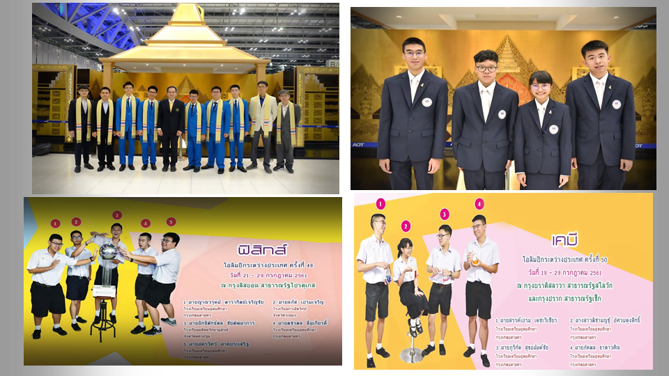โดยในการแข่งขันเคมีโอลิมปิกระหว่างประเทศ ครั้งที่ 50 วันที่19-29 ก.ค.2561 ณ กรุงบราติสลาวา สาธารณรัฐสโลวัก และกรุงปราก สาธารณรัฐเช็กนั้น ผู้แทนประเทศไทยสามารถทำได้ 1เหรียญทอง 3 เหรียญเงิน ดังนี้