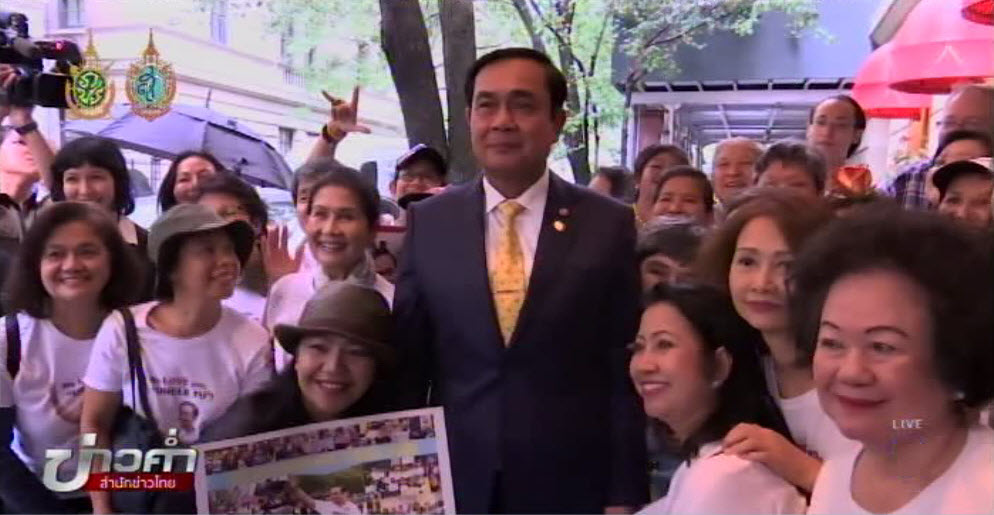 สหรัฐ 20 ก.ย. – นายกรัฐมนตรีเดินทางถึงสหรัฐอเมริกา เพื่อเข้าร่วมประชุมสหประชาชาติ โดยมีคนไทยในสหรัฐมาให้กำลังใจ โอกาสนี้ผู้นำสหรัฐได้เชิญนายกรัฐมนตรีของไทยเข้าร่วมประชุมสุดยอดระดับผู้นำด้านผู้ลี้ภัยด้วย ติดตามรายงานจากโทรทัศน์รวมการเฉพาะกิจแห่งประเทศไทย