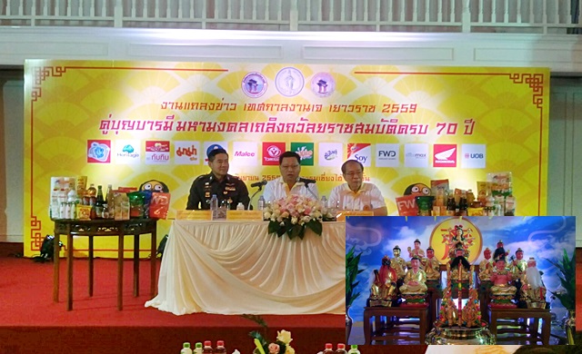 นายประสิทธิ์ องค์วัฒนา ประธานสภาวัฒนธรรมเขตสัมพันธวงศ์ ในฐานะประธานจัดงาน กล่าวว่า เทศกาลกินเจถือเป็นประเพณีสำคัญที่จัดต่อ เนื่องเป็นประจำทุกปี จนกลายเป็นสัญลักษณ์เทศกาลงานเจของกรุงเทพมหานคร ปีนี้จัดขึ้นระหว่างวันที่ 30 กันยายนถึง 9 ตุลาคม รวม 10 วัน 10 คืน ณ บริเวณซุ้มประตูเฉลิมพระเกียรติ 6 รอบพระชนมพรรษาถนนเยาวราช โดยชูแนวคิด คู่บุญบารมี มหามงคล เถลิงถวัลยราชสมบัติ 70 ปี แสดงถึงพลังสามัคคีของประชาชนในการถือศีลกินเจ เพื่อถวายเป็นพระราชกุศลแด่พระบาทสมเด็จพระเจ้าอยู่หัว