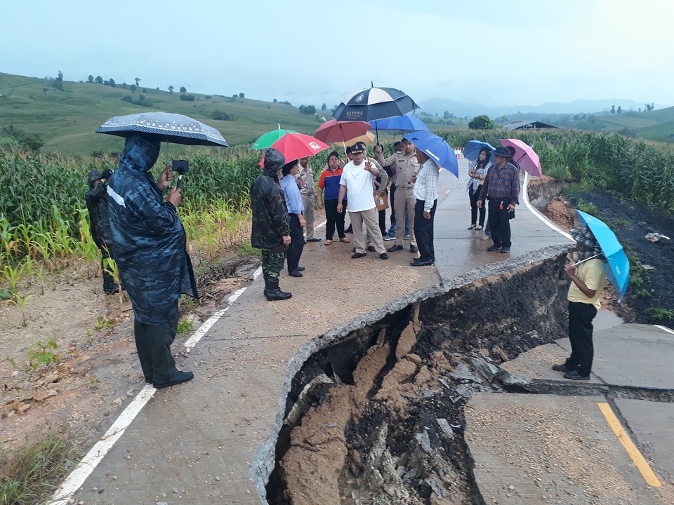 ตาก 1 ส.ค.- นายเจริญฤทธิ์ สงวนสัตย์ ผู้ว่าราชการจังหวัดตาก พร้อมนายสมชัย เจริญกิจรุ่งโรจน์ รองผู้ว่าราชการจังหวัดตาก และหน่วยงานที่เกี่ยวข้อง ลงพื้นที่ตรวจสอบสภาพถนนคอนกรีตทรุดพังพังเป็นแนวยาว 30+40 เมตร ในพื้นที่บ้านทรัพย์สมบูรณ์ หมู่ 15 ตำบลช่องแคบ อำเภอพบพระ หลังเกิดฝนตกหลายวันในพื้นที่ 5 อำเภอชายแดนของตาก โดยเจ้าหน้าที่จากสำนักงานป้องกันและบรรเทาสาธารณภัยจังหวัดตาก และศูนย์ป้องกันและบรรเทาสาธารณภัย เขต 9 พิษณุโลก ได้ตรวจวัดความหนาแน่นของชั้นถมดิน ความหนาของถนน เหล็กเส้น หิน ดินทราย เพื่อตรวจสอบการสร้างเป็นไปตามมาตรฐานหรือไม่ พร้อมกันนี้ได้แจ้งผู้สัญจรให้เลี่ยงไปใช้เส้นทางอื่นชั่วคราว และ อบต.ช่องแคบ ได้นำกรวยกับแผงกั้นมาวางไว้ เพื่อป้องกันอุบัติเหตุและงดการใช้เส้นทาง โดยเจ้าหน้าที่จะเร่งดำเนินการซ่อมแซมให้สามารถสัญจรได้ตามปกติ.-สำนักข่าวไทย
