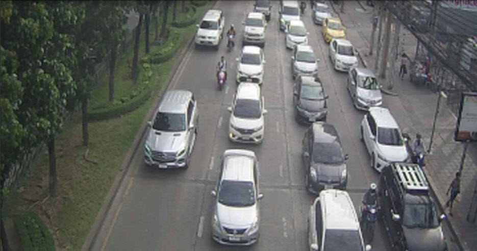 ถนนรัชดาภิเษก ขาเข้า มุ่งหน้าแยกกระราม 9 เคลื่อนตัวได้ช้า ท้ายสะสมใกล้แยกเทียมร่วมมิตร