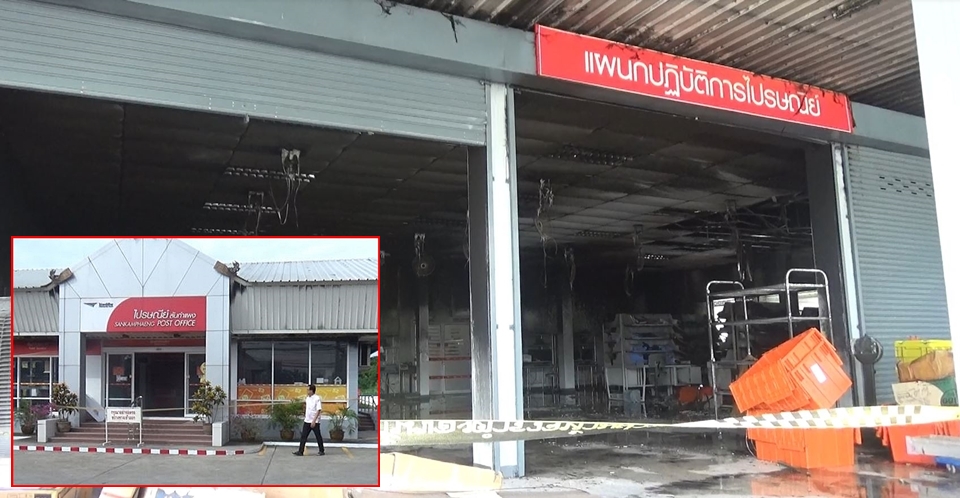 เช้าวันนี้(5 ส.ค.) เกิดเหตุเพลิงไหม้สำนักงานไปรษณีย์ สาขาสันกำแพง จ.เชียงใหม่ โดยเพลิงได้ลุกไหม้บริเวณด้านหลัง ก่อนจะลุกลามขึ้นเพดานหลังคาอย่างรวดเร็ว จนเกิดกลุ่มควันจำนวนมาก เจ้าหน้าที่ระดมรถดับเพลิงของท้องถิ่น จำนวน 6 คัน เข้าฉีดน้ำดับไฟ ใช้เวลาประมาณ 30 นาที จึงสามารถดับไฟได้