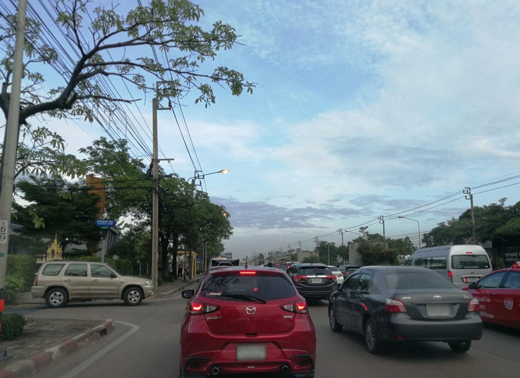 ถนนนครอินทร์ ขาเข้า มุ่งหน้าสะพานพระราม 5 การจราจรติดขัดมาก ท้ายแถวสะสมอยู่ที่แยกบางสีทอง