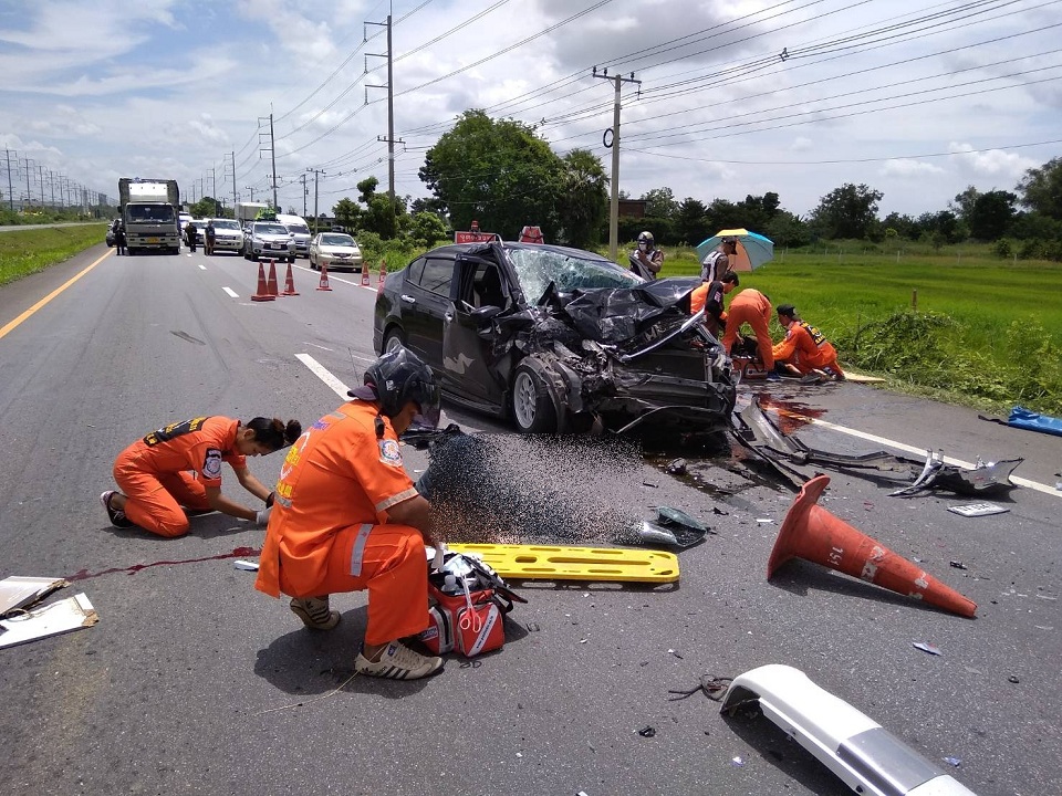 นครราชสีมา 8 ส.ค.- เมื่อเวลา 13.00 น. (8 ส.ค.) พ.ต.อ.กานต์ สิงช้างชัย ร้อยเวร สภ.โชคชัย จ.นครราชสีมา รับแจ้งอุบัติเหตุรถชนกันอย่างแรง 3 คัน มีผู้เสียชีวิตบนถนนสายสีคิ้ว-เดชอุดม ต.พลับพลา จึงประสานกู้ภัยมูลนิธิพุทธรรมการกุศลฮุก 31 ร่วมเข้าจุดเกิดเหตุพบรถเก๋ง สีดำ สภาพด้านหน้าพังเสียหาย และรถตู้พยาบาล ของหน่วยกู้ภัยในจังหวัดพระนครศรีอยุธยา ตกอยู่ร่องกลางถนน เสียหายเช่นกัน และรถจักรยานยนต์อีก 1 คัน ในที่เกิดเหตุมีผู้เสียชีวิต 2 ราย หนึ่งในนี้เป็นชายคนขับรถจักรยานยนต์ นอกจากนี้ ยังมีผู้บาดเจ็บอีก 5 ราย เจ้าหน้าที่ได้นำส่งโรงพยาบาลโชคชัย ส่วนสาเหตุอยู่ระหว่างการตรวจสอบ.-สำนักข่าวไทย
