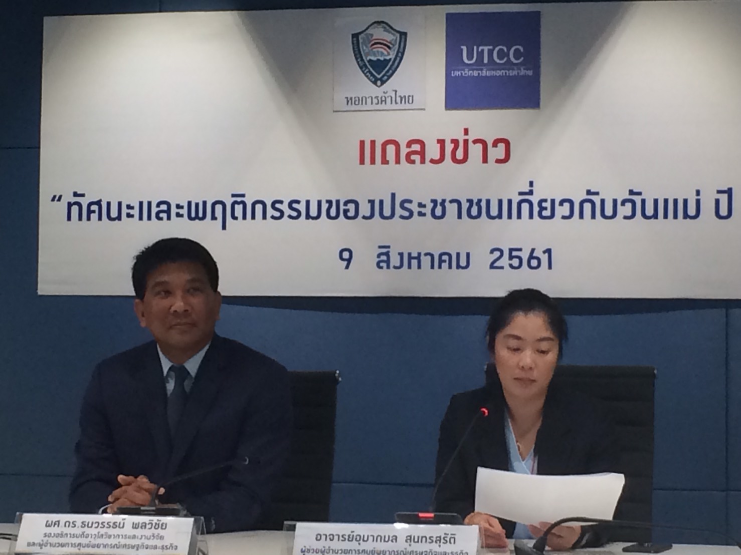 นายธนวรรธน์ พลวิชัย ผู้อำนวยการศูนย์พยากรณ์เศรษฐกิจและธุรกิจมหาวิทยาลัย หอการค้าไทย เปิดเผยว่า จากการสำรวจทัศนคติและพฤติกรรมของประชาชนเกี่ยวกับวันแม่ 2561 คาดมีปริมาณเงินสะพัดในระบบเศรษฐกิจช่วงวันแม่ปีนี้ 13,746.8 ล้านบาท หรือขยายตัวร้อยละ 5.3 เป็นการขยายตัวสูงที่สุดในรอบ 6 ปี โดยงบประมาณในการใช้จ่ายเพิ่มขึ้นร้อยละ 77.7 เพราะประชาชนเห็นว่าเป็นวันพิเศษ มีรายได้เพิ่มขึ้นและเชื่อมั่นว่าเศรษฐกิจกำลังจะดีขึ้น ถือเป็นสัญญาณบวก ว่าประชาชนมีความพร้อมในการใช้จ่ายมากขึ้น เป็นปัจจัยสำคัญช่วยผลักดันให้เศรษฐกิจปีนี้ขยายตัวเกินร้อยละ 4.5 แม้จะมีสงครามการค้าจีนสหรัฐ ขณะที่การส่งออกและการท่องเที่ยว เชื่อว่าจะกลับมาคึกคักอีกครั้งในช่วงไตรมาสสี่