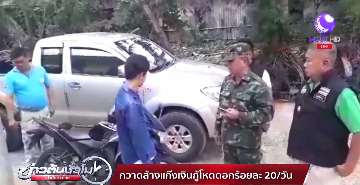 หลังจากแก๊งเงินกู้ที่ ตำบลหนองขวาว อำเภอศีขรภูมิจังหวัดสุรินทร์อ้างตัวว่าไม่เกรงกลัวผู้ใด วันนี้ทหารมณฑลทหารบกที่ 25 สนธิกำลัง เจ้าหน้าที่ตำรวจจาก สภ.ศีขรภูมิออกปฏิบัติการกวาดล้าง แก๊งปล่อยเงินกู้นอกระบบ ดอกเบี้ยมหาโหดร้อยละ 20 บาทต่อวัน และทวงหนี้โหด มีการข่มขู่ ทำร้ายร่างกาย ทุบทำลายทรัพย์สินสิ่งของลูกหนี้ ภายในบ้าน ลูกหนี้ ทราบเป็นนายทุนจากจังหวัดนครราชสีมา พร้อมของกลางของผู้ต้องหา ทั้งรถจักรยานยนต์ที่ใช้ก่อเหตุ เงินสด สมุดบัญชีลูกหนี้ และอื่นๆ อีกหลายรายการ ซึ่งเจ้าหน้าที่ชุดจับกุมจึงควบคุมมาสอบสวนขยายผล และบันทึกจับกุมก่อนส่งผู้ต้องหาให้กับร้อยเวร สภ.ศีขรภูมิ ดำเนินคดีตามกฎหมายและ จะได้ขยายผลกวาดล้างกลุ่มนายทุนดังกล่าวต่อไป.-สำนักข่าวไทย