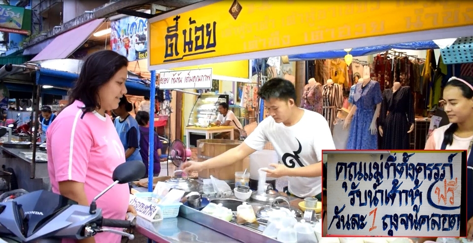 เจ้าของร้านขายน้ำเต้าหู้-เต้าทึง ในตลาดสดเทศบาลตำบลย่านตาขาว อ.ย่านตาขาว จ.ตรัง สุดใจดี ขึ้นป้ายให้คนท้องกินฟรีจนกว่าจะคลอด โดยนายภาคิน ต้นตระกูล เจ้าของร้าน เปิดเผยว่า ทำแบบนี้มากว่า 2 ปีแล้ว เนื่องจากเห็นภรรยาของตนกินน้ำเต้าหู้แล้วลูกทั้ง 4 คนออกมาผิวพรรณดี มีพัฒนาการที่ดีและฉลาดหลักแหลม จึงต้องการให้คุณแม่คนอื่นๆ หันมากินน้ำเต้าหู้ เพื่อสุขภาพของลูกในท้อง จะได้ออกมาสมบูรณ์แข็งแรงและผิวพรรณสดใส โดยให้คุณแม่กินฟรีวันละ 1 ถุงตั้งแต่เริ่มตั้งครรภ์จนคลอด ซึ่งแต่ละวันมีคุณแม่มารับบริการน้ำเต้าหู้วันละ 8-10 คน หรือปีละประมาณ 100 คน