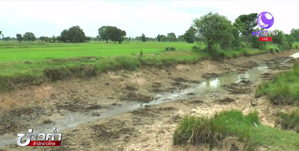 สภาพแหล่งน้ำธรรมชาติในหมู่บ้านไทรโยง ต.สะแกโพรง อ.เมือง จ.บุรีรัมย์ แห้งขอดแม้ก่อนหน้านี้มีฝนตกลงมาบ้าง แต่ปริมาณฝนน้อยทิ้งช่วง ไม่สามารถเก็บกักน้ำไว้ได้ บ้านไทรโยงอยู่นอกเขตชลประทาน ฝนคือความหวังเดียวของชาวนาที่นี้