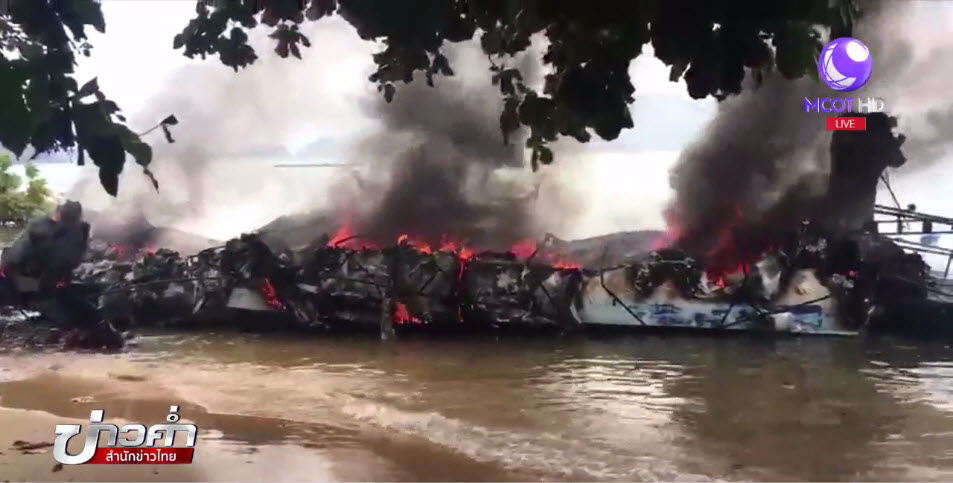 สำหรับเรือที่เกิดเหตุไฟไหม้ เป็นเรือสปีดโบ๊ท 2 ท้อง ไฟเบอร์ 2 เครื่องยนต์ ก่อนเกิดเหตุได้รับนักท่องเที่ยวชาวอาหรับ 20 คน จากแหลมทราย อ.ถลาง จ.ภูเก็ต มาเล่นน้ำที่อ่าวหมาน และขณะนักท่องเที่ยวลงเล่นน้ำ กัปตันเรือได้ขึ้นจากเรือไปทานข้าวบนฝั่ง โดยให้ช่างเครื่องเฝ้าเรือ แต่เรือกลับเกิดไฟไหม้ขึ้น โดยช่างเครื่องบาดเจ็บถูกไฟคลอก ขณะที่ตัวเรือไฟไหม้เสียหายทั้งลำ. – สำนักข่าวไทย