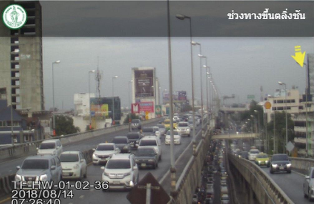 ถนนมอเตอร์เวย์ (ทล.7) ทั้งขาเข้า และขาออก ผ่านต่างระดับทับช้าง รถเคลื่อนตัวได้ช้าทั้ง 2 ฝั่ง