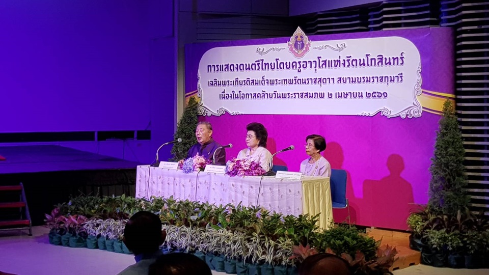ครูอาวุโสด้านดนตรีไทยโชว์บรรเลงเพลง รำวงมาตรฐาน ให้ชมเป็นตัวอย่าง ก่อนเปิดการแสดงในการแสดงดนตรีไทยโดยครูอาวุโสแห่งรัตนโกสินทร์ เพื่อเฉลิมพระเกียรติสมเด็จพระเทพรัตนราชสุดาฯ สยามบรมราชกุมารี เนื่องในโอกาสเจริญพระชนมายุ63 พรรษา ด้วยสำนึกในพระมหากรุณาธิคุณ ที่พระองค์ทรงเป็นศิลปินผู้มีอัจฉริยภาพหลายสาขา เป็นที่ประจักษ์ชัดในวงการศิลปะ โดยเฉพาะด้านดนตรีไทย