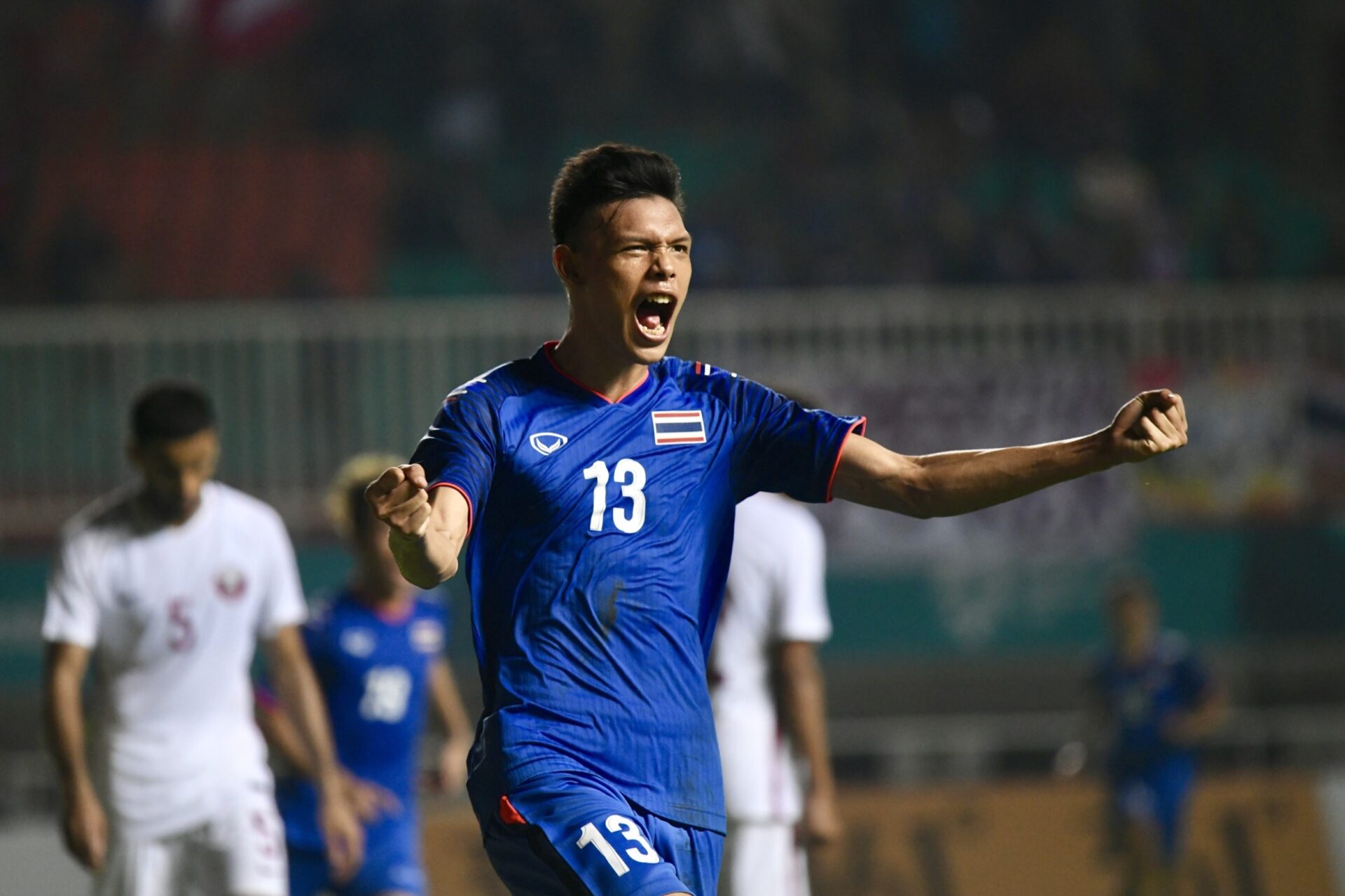 ศึกลูกหนังเอเชียนเกมส์ ครั้งที่ 18 เมื่อวันที่ 14 สิงหาคม 2561 เวลา 19.00 น. ที่สนามปากันสารี ประเทศอินโดนีเซีย เป็นเกมนัดแรกของสาย บี ทีมชาติไทย ประเดิมสนามพบกับ กาตาร์ เกมนี้ “โค้ชโย่ง” วรวุธ ศรีมะฆะ กุนซือของทีมจัดทัพลงสนามในระบบ 4-2-3-1 มี นนท์ ม่วงงาม ยืนเฝ้าเสา แนวรับใช้ รัตนากร ใหม่คามิ ยืนเป็นแบ็คขวา ส่วนแบ็คซ้ายเป็น ชัยวัฒน์ บุราญ ขณะที่คู่เซ็นเตอร์ฮาล์ฟ วรวุฒิ นามเวช ประสานงานร่วมกับ ชินภัทร์ ลีเอาะ แดนกลาง นพพล พลคำ คอยคุมจังหวะเกมร่วมกับ สรรเสริญ ลิ้มวัฒนะ ส่วนปีกซ้ายและขวา เป็น สุภโชค สารชาติ และ ธนาสิทธิ์ ศิริผลา ตามลำดับ ส่วน วรชิต กนิตศรีบำเพ็ญ ยืนเป็นกองหน้าตัวต่ำ และกองหน้าตัวเป้าเป็นหน้าที่ของ เจนรบ สำเภาดี กัปตันทีม