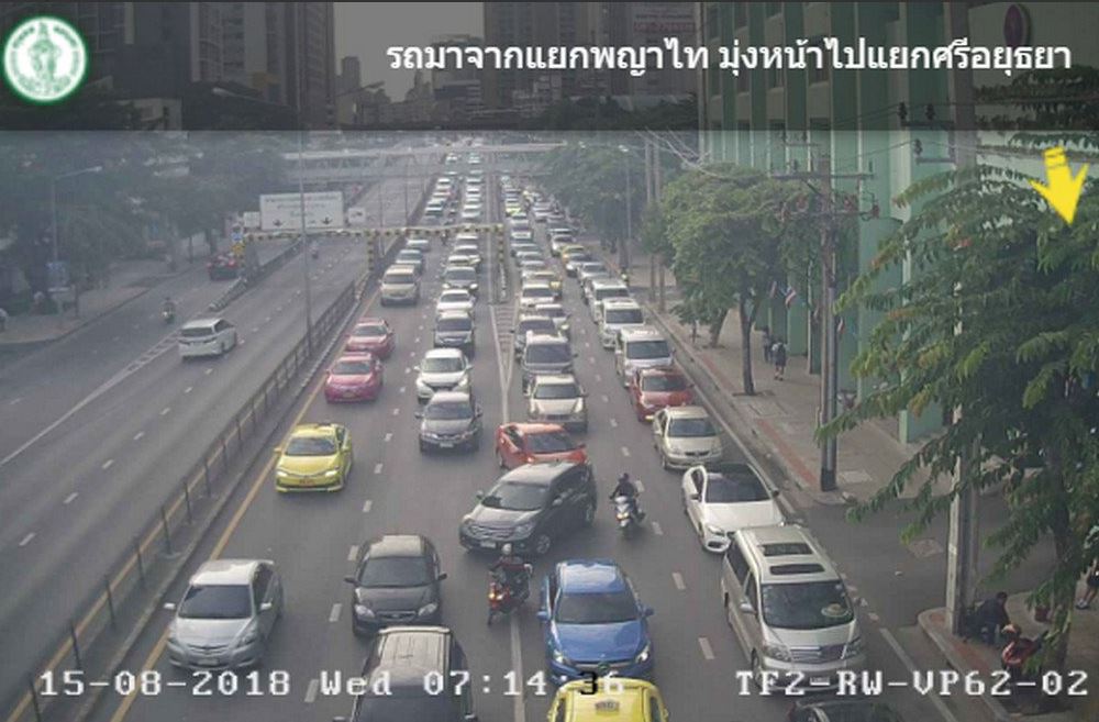 ถนนศรีอยุธยา ขาออก มุ่งหน้าแยกศรีอยุธยา รถติดขัดแล้ว ท้ายแถวสะสมอยู่ที่แยกราชปารภ