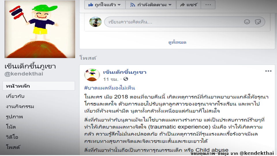 เพจเฟ๊ซบุ๊ก เข็นเด็กขึ้นภูเขา @kendekthai ซึ่งเป็นเป็นเพจเฟซบุ๊ค ที่เกิดจากการรวมแนวคิดเล็กๆ ของจิตแพทย์เด็กและวัยรุ่น 4 คน ได้โพสต์ ข้อความถึงละครดังที่กำลังออกอากาศในขณะนี้ ในช่วงฉากหนึ่งซึ่งเป็นเรื่องราวโดยสรุปว่า