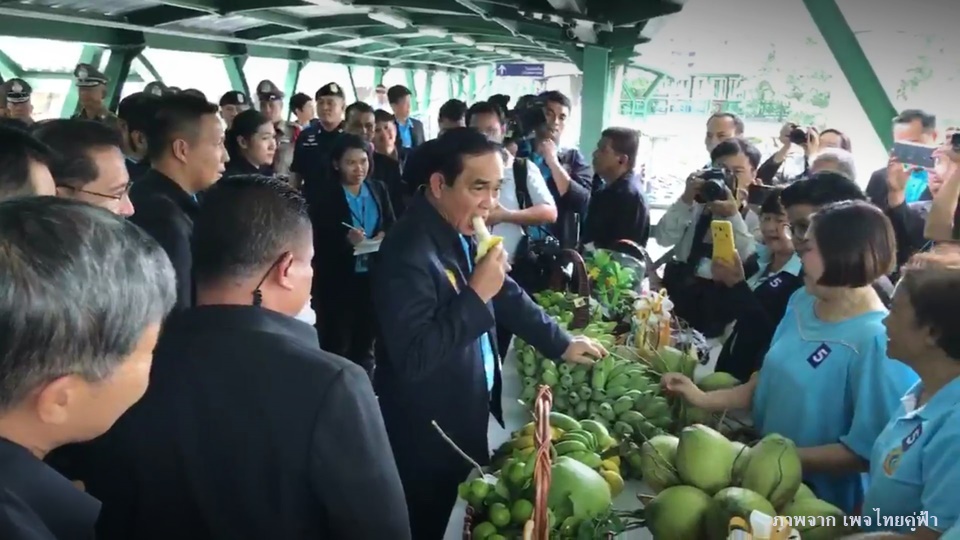 กทม.15 ส.ค.-นายกฯขอให้หน่วยงานที่เกี่ยวข้อง เร่งพัฒนาการเชื่อมต่อการเดินทาง ถนน-รถไฟฟ้า-คลอง ขณะที่ประชาชนมอบผลไม้ให้กำลังใจนายกฯในการทำงาน ซึ่งนายกฯได้ชิมกล้วยน้ำหว้า และชวนผู้ว่าฯ กทม.ชิมด้วย เพื่อจะได้ทำงานง่ายๆ