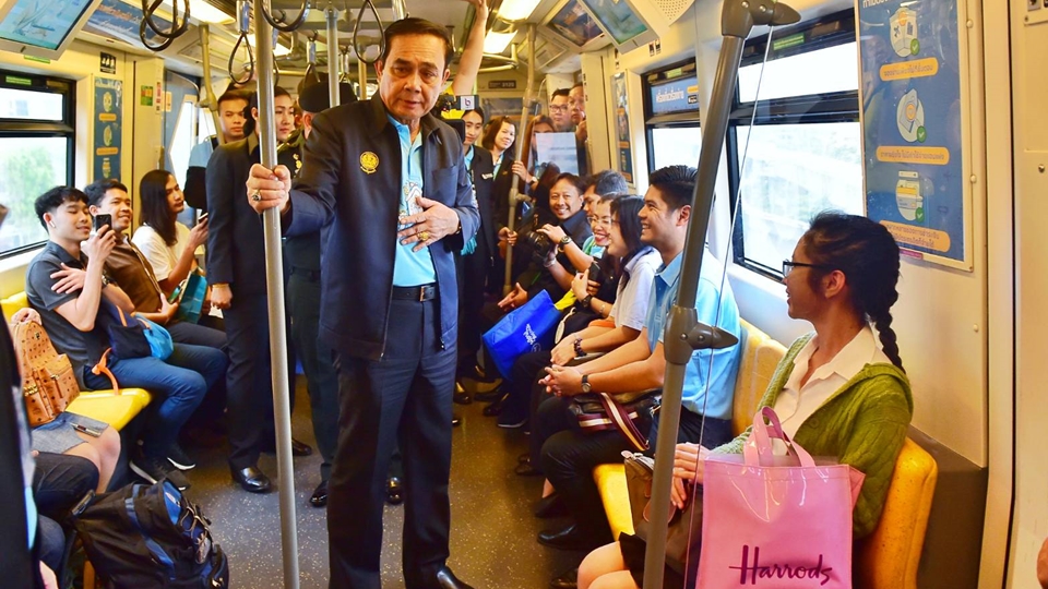 การขึ้นรถไฟฟ้าบีทีเอสครั้งนี้ นายกรัฐมนตรีโดยสารรถไฟฟ้าร่วมกับประชาชนทั่วไป ไม่มีการปิดกั้น ซึ่งได้รับความสนใจจากประชาชน และมีประชาชนทักทายอย่างต่อเนื่อง อย่างไรก็ตาม นายกรัฐมนตรี ได้ลุกให้ผู้โดยสารคนอื่นนั่งแทนเก้าอี้ตัวเอง รวมทั้งเดินทักทายในขบวนรถ พร้อมพูดคุยกับนักท่องเที่ยวชาวต่างชาติที่ใช้บริการรถไฟฟ้าบีทีเอส ก่อนที่นายกรัฐมนตรี จะกล่าวว่า สิ่งที่รัฐบาลทำมาทั้งหมด ก็ทำให้กับประชาชน เพื่อให้ได้รับบริการที่สะดวกสบายและมีอนาคตที่ดี
