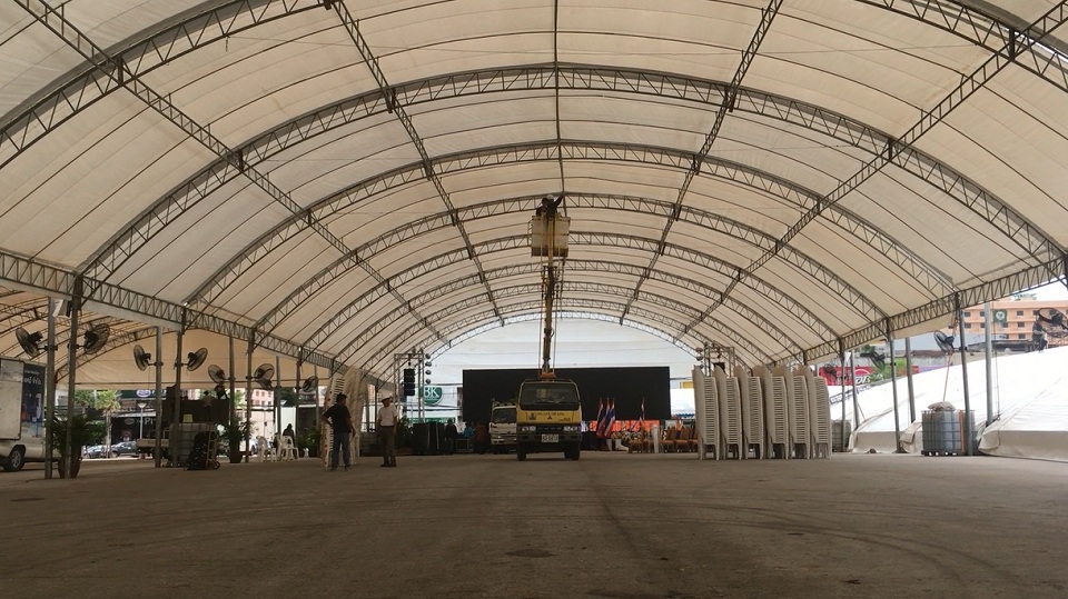 บรรยากาศการจัดเตรียมบริเวณลานกิจกรรมทิศตะวันตก สนามทุ่งศรีเมือง จ.อุดรธานี วันนี้ (15 ส.ค.) เจ้าหน้าที่ได้นำเต้นแบบโดมขนาดใหญ่ จำนวน 3 หลัง มากางอยู่บนลาน และเต็นท์ขององค์การบริหารส่วนจังหวัด (อบต.) อุดรธานี ล้อมอีก 2 แถว รวมทั้งเวที เครื่องเสียง ระบบไฟฟ้า และเครื่องตรวจอาวุธ เพื่อเตรียมความพร้อมใช้เป็นสถานที่การมอบโฉนดที่ดินคืนให้กับประชาชนในพื้นที่ 12 จังหวัดภาคตะวันออกเฉียงเหนือ วันพรุ่งนี้ (16 ส.ค.) โดยมี พล.อ.ประวิตร วงษ์สุวรรณ รองนายกรัฐมนตรี และรัฐมนตรีว่าการกระทรวงกลาโหม จะเดินทางมาเป็นประธาน