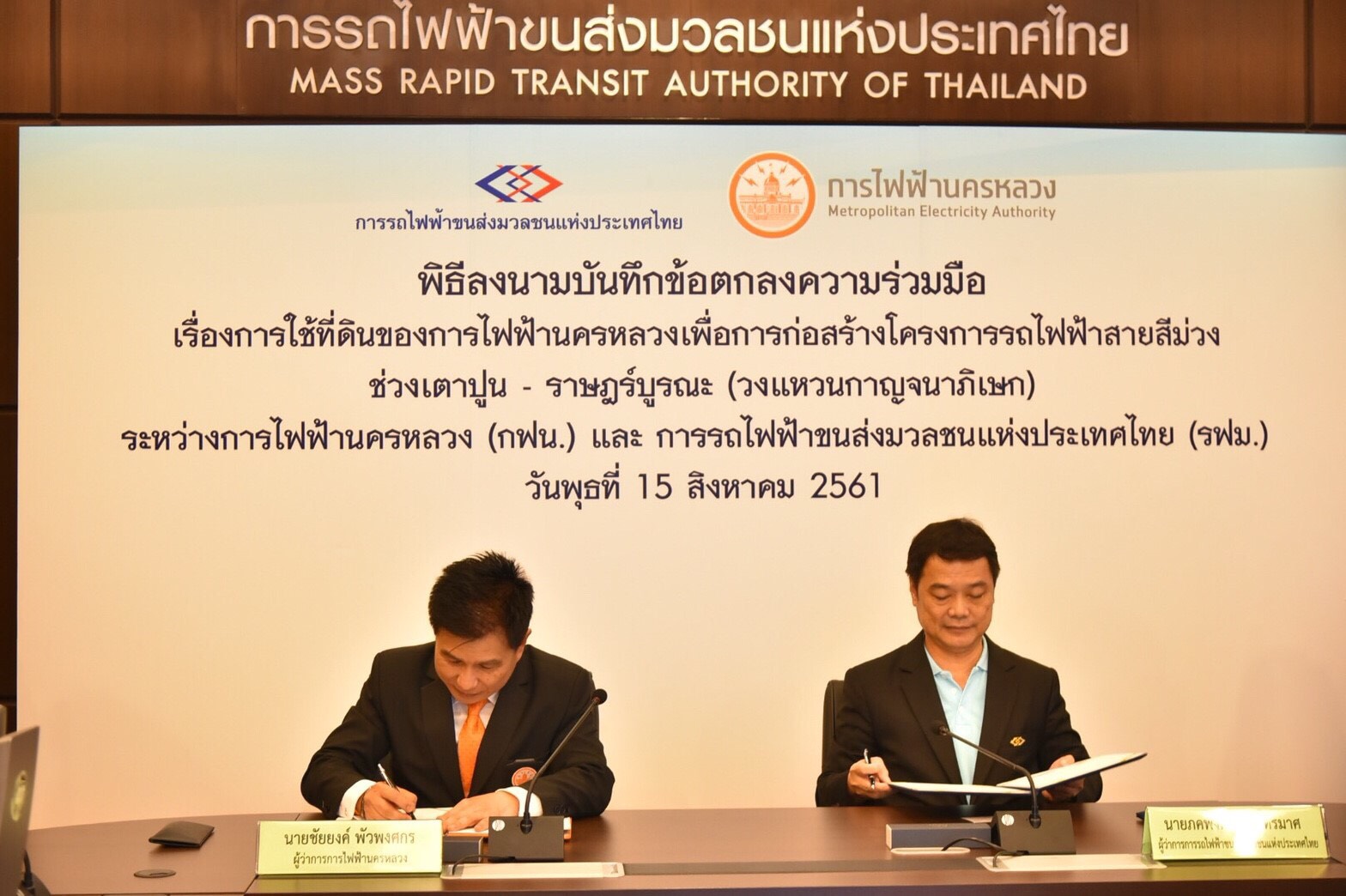 กรุงเทพฯ 15 ส.ค.-กฟน. ลงนาม MOU รฟม. ใช้ที่ดิน กฟน. เขตสามเสน