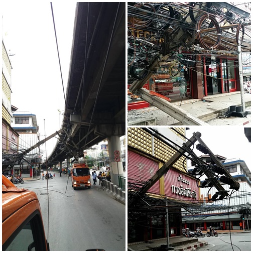 กรุงเทพฯ 16 ส.ค. – กฟน.เร่งแก้ไขปัญหารถบรรทุกเกี่ยวสายสื่อสาร ทำให้เสาไฟฟ้าล้ม 2 ต้น บริเวณถนนรามคำแหง