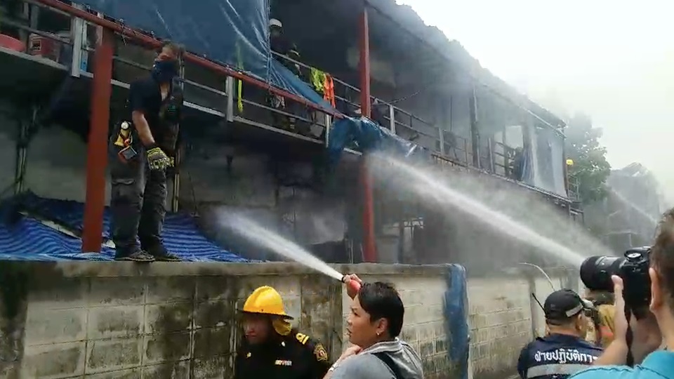 กรุงเทพฯ 18 ส.ค.- เกิดเหตุเพลิงไหม้เรือนพักคนงาน ซอยเพชรบุรี 9 เสียหายกว่า 100 ห้อง คนงานเกือบ300 คนต่างหนีตายวุ่น