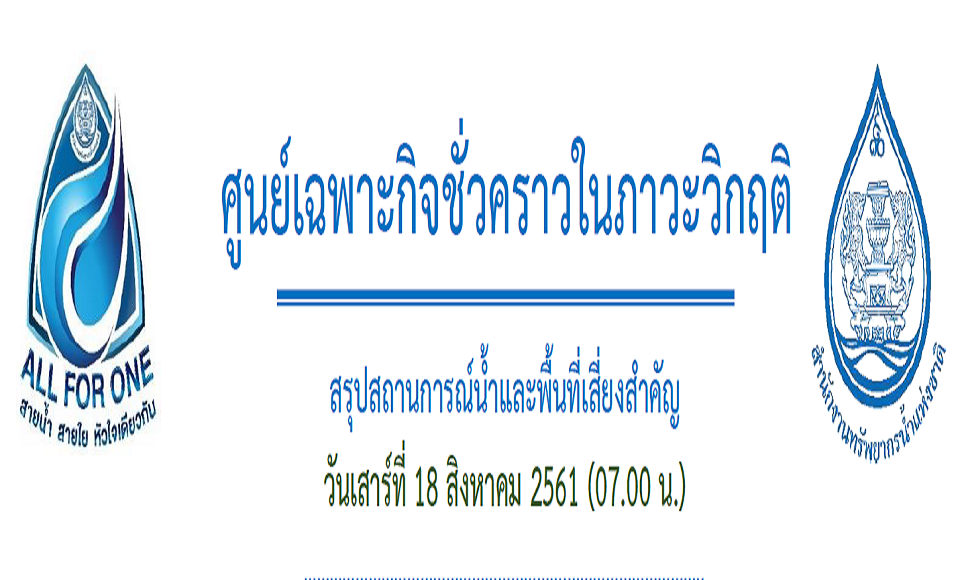 สถานการณ์ฝน 18 ส.ค. 61 ประเทศไทยยังคงมีฝนฟ้ำคะนองหลายพื้นที่ กับมีฝนตกหนักบางแห่ง โดยเฉพาะ 24 จังหวัด ที่ต้องเฝ้าระวัง ภาคเหนือ น่าน พะเยา แม่ฮ่องสอน เชียงใหม่ เชียงราย ลำพูน ลำปาง สุโขทัย กำแพงเพชร ตาก ภาคตะวันออกเฉียงเหนือ เลย ชัยภูมิ ภาคตะวันตก ราชบุรี กาญจนบุรี เพชรบุรี ประจวบคีรีขันธ์ ภาคตะวันออก นครนายก ปราจีนบุรี จันทบุรี ตราด ภาคใต้ ชุมพร ระนอง พังงา ภูเก็ต 24 ชั่วโมงที่ผ่านมา (05.00 น.) มีฝนตกหนักถึงหนักมากในภาคเหนือ (น่าน 414.0 มม. พะเยา 192.5 มม. เชียงราย 114.5 มม.) ส่วนภาคตะวันออกเฉียงเหนือ ภาคตะวันออก ภาคตะวันตก ภาคกลาง และภาคใต้ โดยมีฝนตกเล็กน้อยถึงปานกลาง