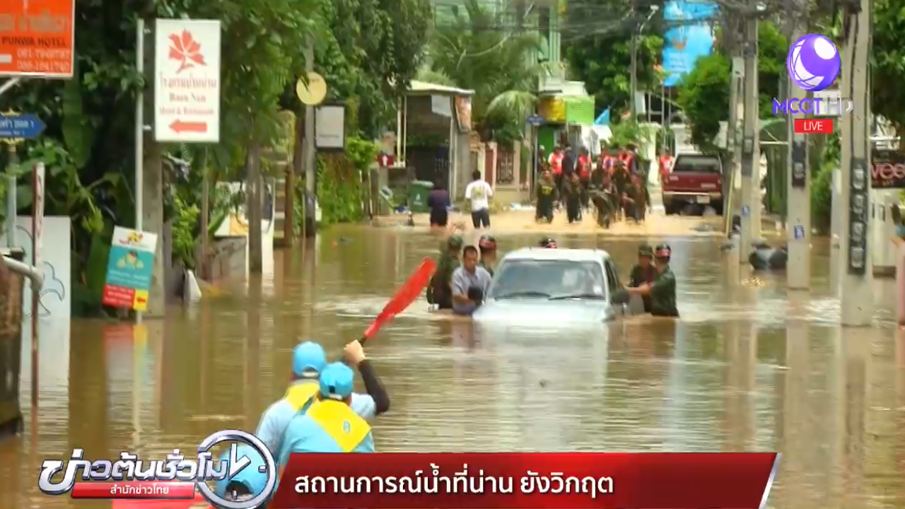น่าน 18 ส.ค.-เกาะติดสถานการณ์น้ำจากลำน้ำน่านที่ไหลผ่านตัวเมืองน่าน ล่าสุดยังไหลทะลักเข้าท่วมชุมชนเขตเมืองและขยายวงกว้างออกไปเรื่อยๆ ขณะที่อำเภอรอบนอก มีดินสไลด์ปิดทับเส้นทางหลายจุด.-สำนักข่าวไทย