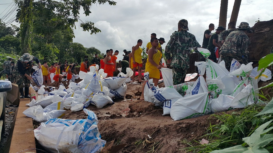 ความคืบหน้าการป้องกันน้ำท่วมเขตเศรษฐกิจของเทศบาลเมืองน่าน เนื่องจากพบรอยรั่วใต้พนังกั้นน้ำแม่น้ำน่าน หน่วยทหารกองพันทหารม้าที่ 15 และพระสงฆ์สามเณรวัดพระธาตุช้างค้ำวรวิหาร ช่วยกันลำเลียงกระสอบทรายนำไปอุดตามช่องโหว่และรั่วของพนังกั้นน้ำตลอดความยาว 3 กิโลเมตร แต่น้ำยังคงทะลักเข้ามาอย่างต่อเนื่อง โดยเฉพาะบริเวณบ้านดอนแก้วใต้พนังกั้นน้ำเป็นช่องโหว่ขนาดใหญ่ น้ำได้ไหลเข้าท่วมบ้านสวนตาลล่าง-ดอนแก้ว-ท่าช้าง-บ้านดอนศรีเสริมกสิกร และบ้านหัวเวียงใต้บางส่วน ระดับน้ำสูงกว่า 1 เมตร อีกทั้งยังผุดตามท่อระบายน้ำ ล่าสุดท่วมพื้นที่ตลาดตั้งจิตนุสรณ์แล้ว ระดับน้ำกว่า 30 เซนติเมตร ผู้ค้ารีบย้ายแผงมาขายบนถนนชั่วคราว