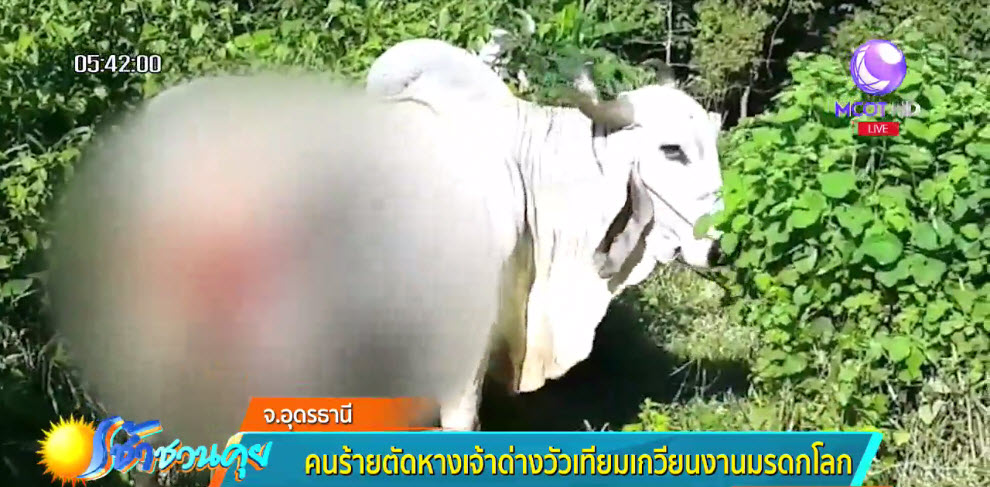 เมื่อวานนี้ (19 ส.ค.) ผู้สื่อข่าวเดินทางไปที่ทุ่งนาหลังวัดเทพประทานพร บ้านเชียง ต.บ้านเชียง อ.หนองหาน หลังจากได้รับแจ้งจากนายอเนก เสมอวงศ์ อายุ 65 ปี คนเลี้ยงวัวเทียมเกวียนที่แหล่งมรดกโลกบ้านเชียง ว่า “เจ้าด่าง” ซึ่งเป็นวัวเพศผู้ นำไว้ใช้เทียมเกวียน 1 ใน 4 ตัว ที่ถูกไถ่ชีวิตออกมาจากโรงฆ่าสัตว์เมื่อ 6 ปีที่แล้ว ถูกคนร้ายแอบตัดหางทิ้ง ทำให้เจ้าด่างทรมานจากบาดแผลที่ถูกตัดหาง โดยแผลมีเลือดไหลออกมาตลอดเวลา และเริ่มมีแมลงวันตอม