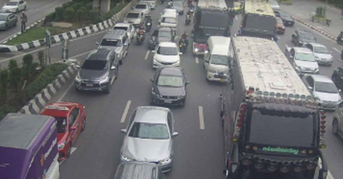ถนนมอเตอร์เวย์ (ทล.7) ทั้งขาเข้า และขาออก ผ่าน กม.6 ช่วงต่างระดับทับช้าง รถมาก เคลื่อนตัวได้ช้า