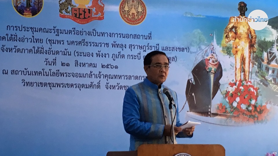 จ.ชุมพร 21 ส.ค.- นายกรัฐมนตรี เผย ครม.ไม่ได้อนุมัติโครงการใดๆ แต่มารับฟังข้อเสนอภาคเอกชนที่จะเพิ่มศักยภาพพื้นที่ 11 จังหวัดภาคใต้ ย้ำการพัฒนาเขตเศรษฐกิจพิเศษภาคใต้จะเชื่อมโยงสองฝั่งทะเลอันดามันและอ่าวไทย ใน 5 ด้าน