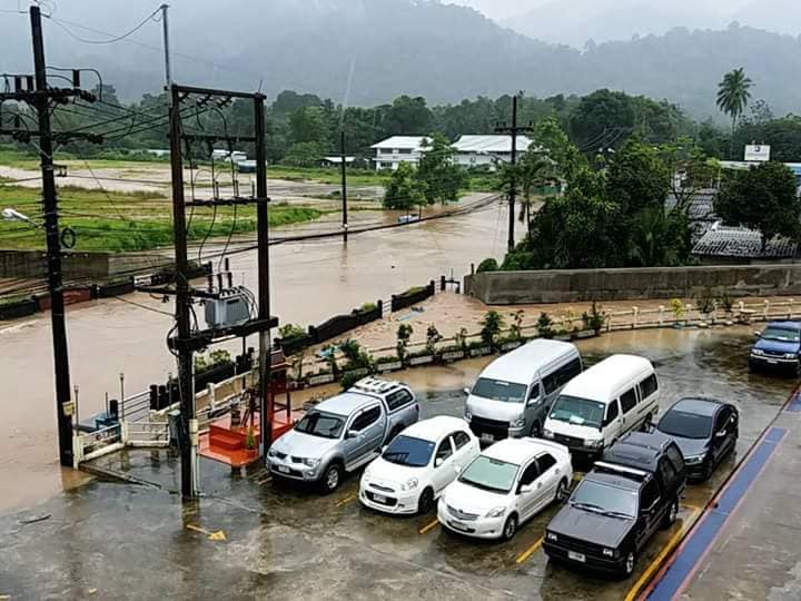 ศูนย์เตือนภัยองค์การบริหารส่วนตำบลหาดส้มแป้น อ.เมือง จ.ระนอง รายงานการตรวจวัดปริมาณน้ำฝน ณ จุดตรวจวัดปริมาณน้ำฝน อบต.หาดส้มแป้น ตั้งแต่เวลา 07.00-12.00 น. วันนี้ (23 ส.ค.) วัดได้สูงสุด 120 มิลลิเมตร เป็นระดับที่ต้องเฝ้าระวัง และคลองหาดส้มแป้นที่ไหลผ่านตัวเมืองล้นตลิ่งท่วมพื้นที่แหล่งท่องเที่ยวบริเวณบ่อน้ำร้อนแร่รักษะวาริน และประกาศปิดพื้นที่ชั่วคราว