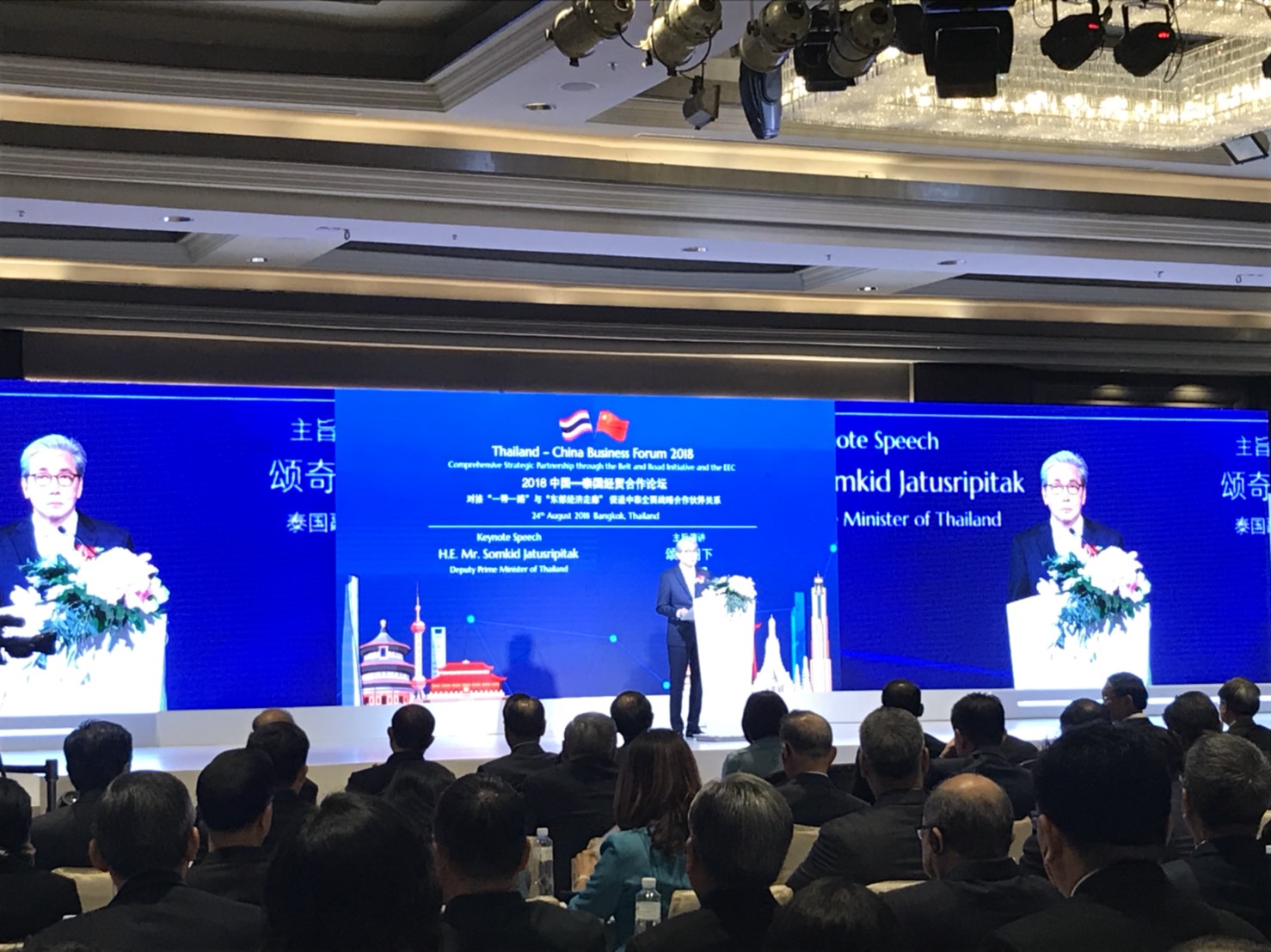 นายสมคิด จาตุศรีพิทักษ์ รองนายกรัฐมนตรี กล่าวปาฐกถาพิเศษ ภายในงานสัมมนา “Thailand-China Business Forum 2018: Comprehensive Strategic Partnership through the Belt and Road Initiative and the EEC” ว่า ขอต้อนรับนักลงทุนจีนมากกว่า 600 ราย ที่ให้ความสนใจมาศึกษาลู่ทางการลงทุนในประเทศไทย เพราะมองว่าไทยตั้งอยู่ใจกลางของภูมิภาคอาเซียน รัฐบาลได้กำหนดยุทธศาสตร์ทางเศรษฐกิจเชื่อมโยงกับนโยบาย Belt and Road Initiative(BRI) เพราะจีนเป็นเสาหลักของเศรษฐกิจโลก หลังจากได้แก้ปัญหาความยากจน ลดความเหลื่อมล้ำทางสังคมเป็นเป้าหมายของไทยที่จะดำเนินแผนดังกล่าว ขณะนี้ไทยได้เร่งรัดการพัฒนาโครงการเขตพัฒนาพิเศษภาคตะวันออก (EEC) นับว่าคืบหน้าทุกด้าน ในช่วง 2 ปีครึ่งที่ผ่านมาคำขอส่งเสริมการลงทุนในเขตอีอีซี 822 โครงการ มูลค่า 700,000 ล้านบาท สัดส่วนร้อยละ 47 ของมูลค่าคำขอลงทุนทั้งหมด นักลงทุนจีนยื่นลงทุนสูงถึง 60,000 ล้านบาท