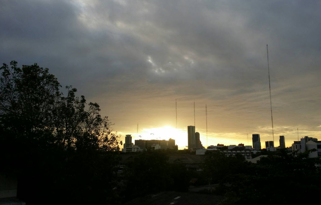 สำหรับกรุงเทพฯ และปริมณฑล มีเมฆเป็นส่วนมาก กับมีฝนฟ้าคะนอง ร้อยละ 70 ของพื้นที่ และมีฝนตกหนักบางแห่งส่วนมากในช่วงระหว่างบ่ายถึงค่ำ อุณหภูมิต่ำสุด 24-25 องศาเซลเซียส อุณหภูมิสูงสุด 31-35 องศาเซลเซียส