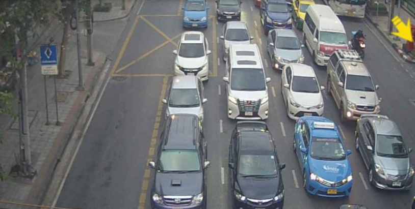ถนนนครสวรรค์ จากแยกเทวกรรม มุ่งหน้าไปแยกนางเลิ้ง รถหนาแน่น เคลื่อนตัวได้ช้า