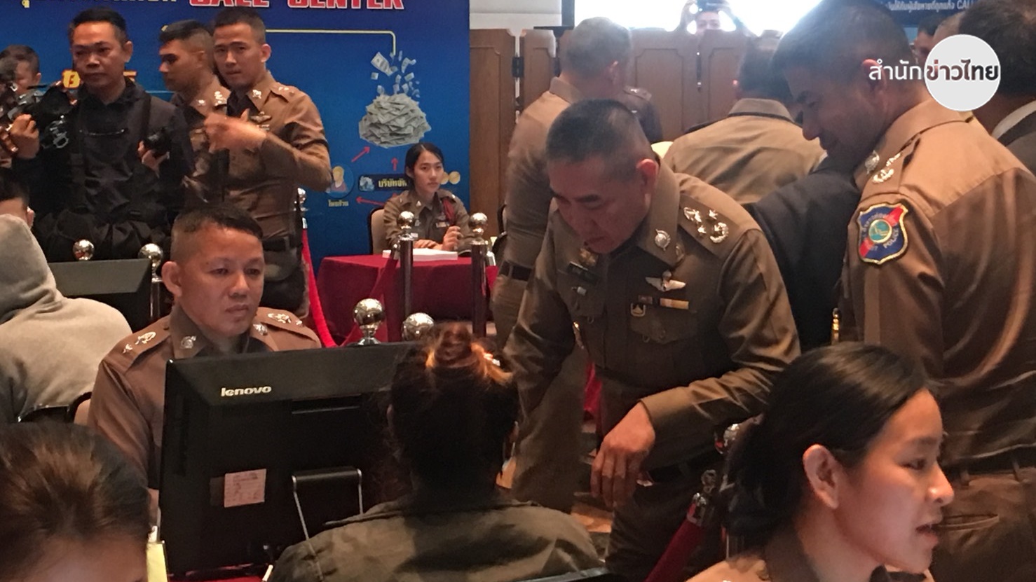 พนักงานสืบสวนศูนย์ปราบปรามอาชญากรรมทางเทคโนโลยีสารสนเทศ สอบปากคำผู้ต้องหาคอลเซ็นเตอร์ 19 คน ทั้งหมดถูกตำรวจไทยร่วมกับตำรวจเวียดนาม เข้าจับกุมที่คอนโดมิเนียมกลางเมืองโฮจิมินห์ เวียดนาม เมื่อวันที่ 24 สิงหาคมที่ผ่านมา แล้วคุมตัวกลับประเทศไทย