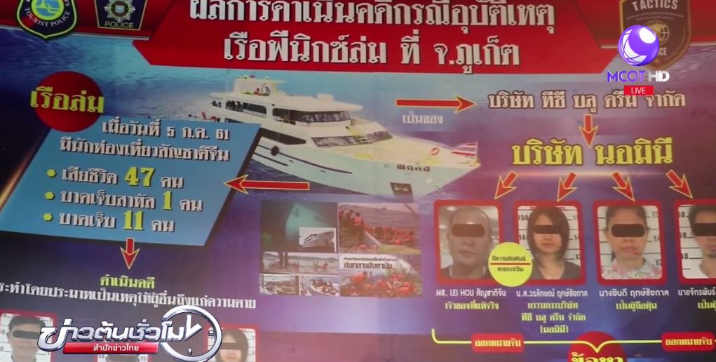 ภูเก็ต 27 ส.ค.-ตำรวจ เร่งติดตามตัวนายทุนชาวจีน เจ้าของบริษัทเรือที่เกิดเหตุอับปาง ที่ภูเก็ต หลังพบฝ่าฝืนกฎหมายให้คนไทยเป็นนอมินีถือหุ้น