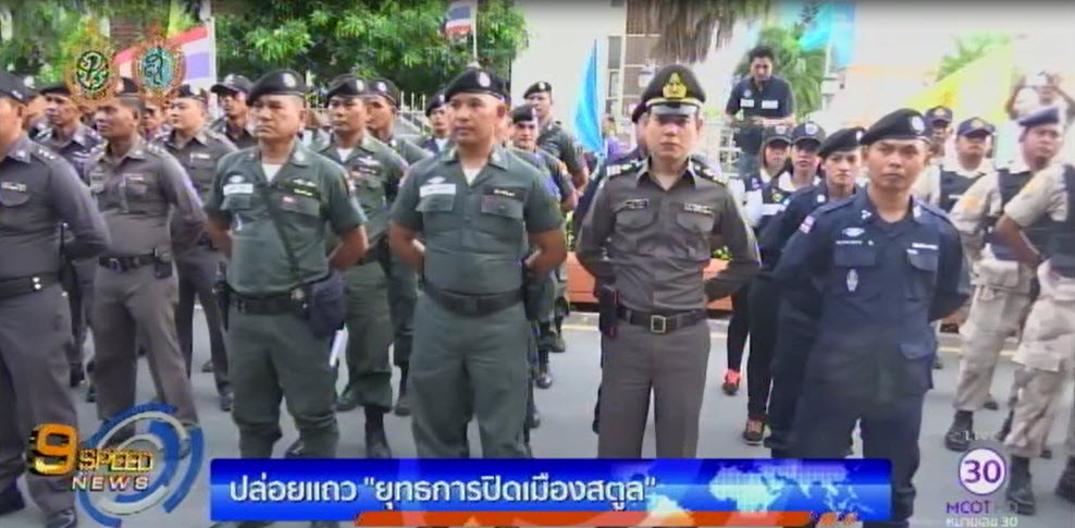 นายภัทรพนธ์ รัตนพิเชฏฐชัย ผู้ว่าราชการจังหวัดสตูล ร่วมปล่อยแถวเจ้าหน้าที่ตำรวจภูธร จ.สตูล ตำรวจตรวจคนเข้าเมือง ตำรวจตระเวนชายแดนที่ 436 กำลังทหารและเจ้าหน้าที่อาสาสมัครสตูล กว่า 100 นาย ผนึกกำลังกวาด ล้างอาชญากรรมตามแผน “ยุทธการปิดเมือง” รอบเมืองสตูล พร้อมจัดชุดเคลื่อนที่เร็วกวดขันสถานบันเทิง กลุ่มนักซิ่ง แก๊งเด็กแว้น ซึ่งสร้างความอุ่นใจให้กับประชาชน เพราะก่อนหน้านี้ ตำรวจกองปราบปรามบุกจับบ่อนพนัน มวยตู้กลางเมืองสตูลไปเมื่อไม่กี่วันที่ผ่านมา.-สำนักข่าวไทย
