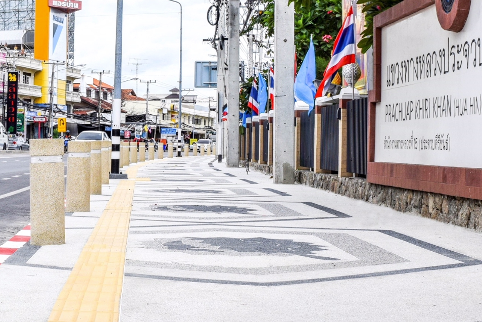 กรุงเทพฯ 30 ส.ค. – กรมทางหลวงปรับปรุงทางเท้าเมืองหัวหินเป็นลายสับปะรด ลายทุเรียน และเรือใบ พร้อมติดตั้งเสากันรถและทางลาด สนับสนุนการท่องเที่ยว ส่งเสริมคุณภาพชีวิตผู้พิการ