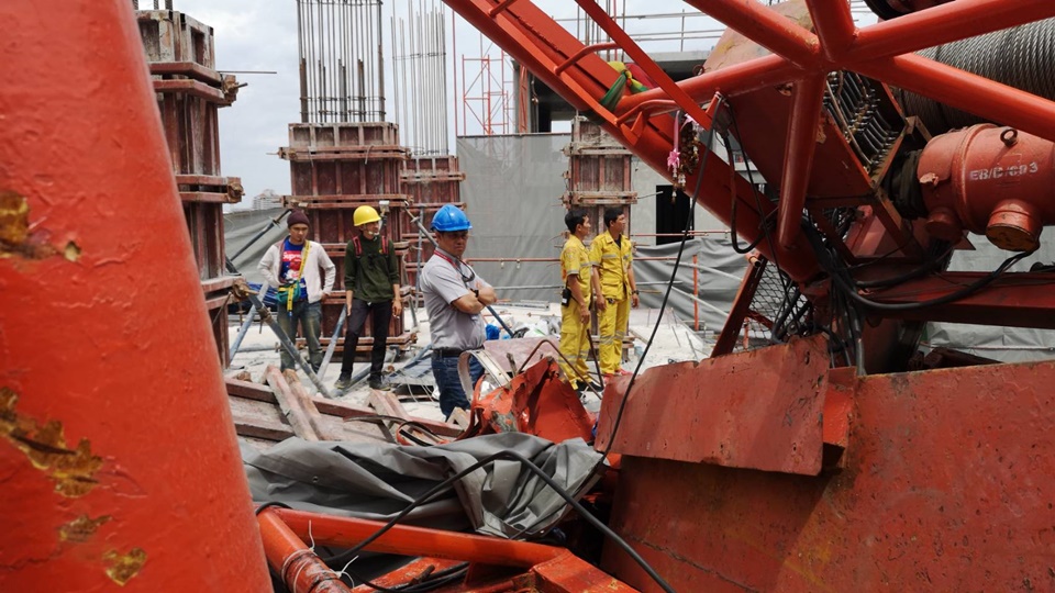 สลด!เครนขนาดใหญ่ล้มทับคนงานก่อสร้างคอนโดย่านพระราม 9ดับ1 ราย