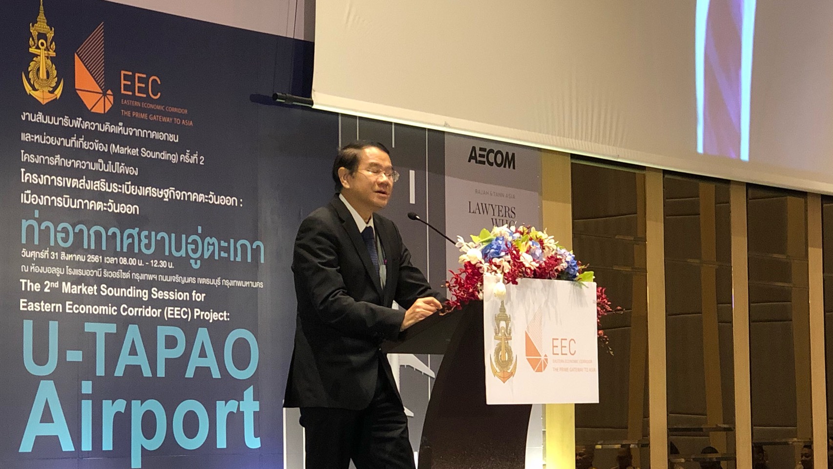 นายกอบศักดิ์ ภูตระกูล รัฐมนตรีประจำสำนักนายกรัฐมนตรี กล่าวยืนยันกับภาคเอกชนที่เข้าร่วมงาน Market Sounding ครั้งที่ 2 โครงการเมืองการบินภาคตะวันออก ว่า การประมูลโครงการนี้จะสามารถได้ผู้ชนะประมูลก่อนเดือนกุมภาพันธ์ปีหน้า และลงนามเสร็จก่อนที่จะมีการเลือกตั้งปีหน้า เพื่อให้มั่นใจว่าโครงการนี้เริ่มต้นได้เลยโดยไม่ต้องรอรัฐบาลใหม่ รัฐบาลนี้มีความตั้งใจให้โครงการเมืองการบินที่มีการพัฒนาท่าอากาศยานอู่ตะเภาเป็น game changer หรือเป็นจุดเปลี่ยนสำคัญในเรื่องการเป็นศูนย์กลางทางการบิน และยังเชื่อมโยงถึงการเป็นศูนย์ซ่อมบำรุงอากาศยานที่มีความสำคัญที่สุดในเอเชีย และสำนักงานอีอีซี ยังเจรจากับบริษัทผู้ผลิตชิ้นส่วนอากาศยาน เพื่อเข้ามาลงทุนเพื่อเสริมเมืองการบินด้วย