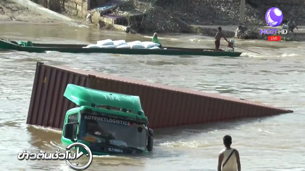 ตาก 3 ก.ย. – รถเทรลเลอร์บรรทุกหมากส่งออกไปประเทศเมียนมา ลื่นไถลถอยหลังตกลงสู่แม่น้ำเมย พร้อมกับเรือสินค้าอีก 1 ลำ บริเวณท่าเรือสินค้าที่ 27 ตำบลท่าสายลวด อำเภอแม่สอด จังหวัดตาก ทำให้คนงานกว่า 10 คน ตัดสินใจทิ้งรถบรรทุกและเรือ กระโดดลงแม่น้ำเมย ว่ายน้ำเข้าฝั่งเอาชีวิตรอด หลังเกิดเหตุทหาร ฝ่ายปกครอง และชาวบ้านทั้งสองประเทศ รีบนำเรือหางยาวหลายลำ ไปช่วยเหลือทั้งคนขับรถบรรทุกและคนงาน ขึ้นจากน้ำได้อย่างปลอดภัย ส่วนสาเหตุเกิดจากเหล็กหนุนล้อเกิดยุบตัวจมดินแนวตลิ่ง ทำให้รถลื่นไหลลงแม่น้ำเมยทับเรือลากจมลงไปด้วย ขณะนี้ยังไม่สามารถกู้ซากรถได้ เพราะแม่น้ำเมยมีระดับสูงและไหลแรง .- สำนักข่าวไทย